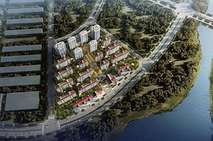 项目占地面积约52915.14㎡,位于天府视高板块柴桑河湿地公园畔,独享河湾天然生态资源景观,咫尺观湖,移步即至,项目景观采用中央南北景观中轴,高低区错落布置、天际线变化丰富、组团界限清晰,保证高品质居住体验。